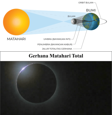Gerhana Matahari adalah salah satu fenomena astronomi paling menakjubkan yang bisa kita saksikan dari Bumi. Secara sederhana, gerhana ini terjadi ketika Matahari, Bulan, dan Bumi berada pada satu garis lurus, sehingga cahaya Matahari yang seharusnya menuju ke Bumi terhalang oleh Bulan.