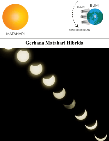 Ini adalah jenis yang paling langka. Gerhana ini dimulai sebagai gerhana cincin, berubah menjadi gerhana total di tengah jalur lintasannya, dan kembali menjadi gerhana cincin sebelum berakhir. Hal ini terjadi karena kelengkungan permukaan Bumi.
