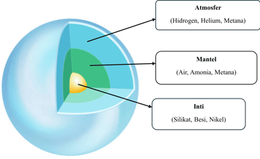 Inti (Core): Berupa inti berbatu padat yang ukurannya kira-kira sebesar massa Bumi. Inti ini terbuat dari besi, nikel, dan silikat.