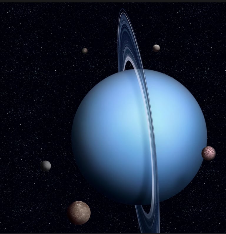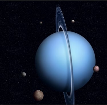 Uranus adalah planet ketujuh dari Matahari dalam Tata Surya kita dan merupakan planet terbesar ketiga berdasarkan diameternya. Planet ini pertama kali ditemukan pada tahun 1781 oleh astronom William Herschel, menjadikannya planet pertama dalam sejarah yang ditemukan menggunakan teleskop. Keunikan paling menonjol dari Uranus adalah sumbu rotasinya yang sangat miring (sekitar 97,7 derajat). Akibat kemiringan ekstrem ini, Uranus berputar pada sisinya sehingga tampak seperti "menggelinding" di sepanjang garis orbitnya saat mengelilingi Matahari.