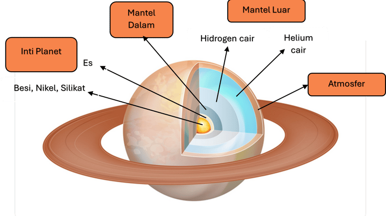 Lapisan planet saturnus (dari dalam ke luar):