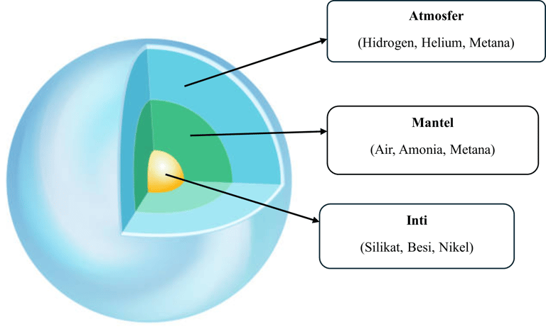 Inti Padat: Diperkirakan berupa inti berbatu atau es yang berukuran sekitar 10-20 kali massa Bumi.
