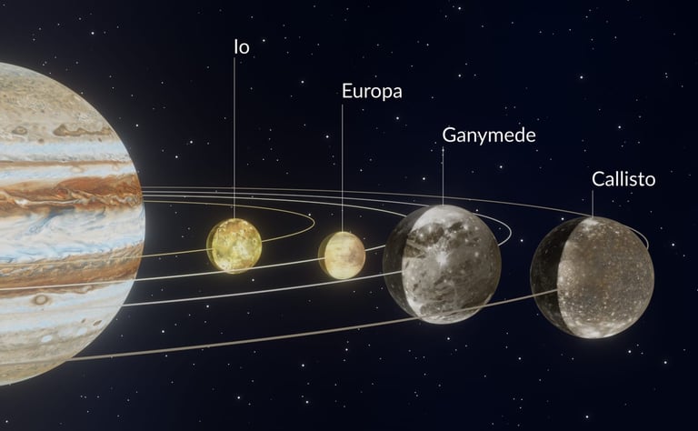 Hingga saat ini, Jupiter tercatat memiliki 95 satelit alami yang telah dikonfirmasi. Namun, ada empat bulan terbesar yang paling terkenal, yang ditemukan oleh Galileo Galilei pada tahun 1610, yang disebut Satelit Galilea: