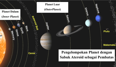 Planet Dalam (Inner Planets): Planet-planet yang letaknya berada di antara Matahari dan Sabuk Asteroid.