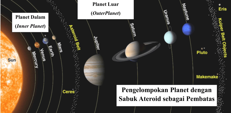 Kriteria pengelompokan planet adalah sebagai berikut:
